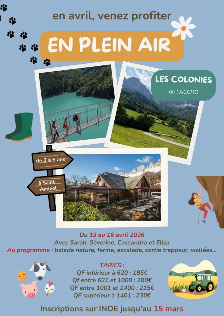 Séjour maternelles 13-16 Avril 2026: cliquez-ici.