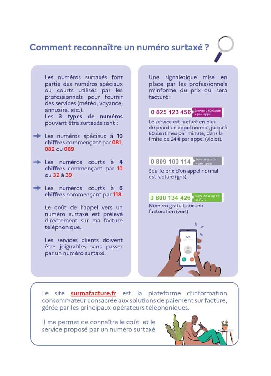 - Si j’ai un doute sur un numéro que l’on m’invite à rappeler : je consulte l’annuaire inversé sur www.surmafacture.fr pour connaître le service et le prix.