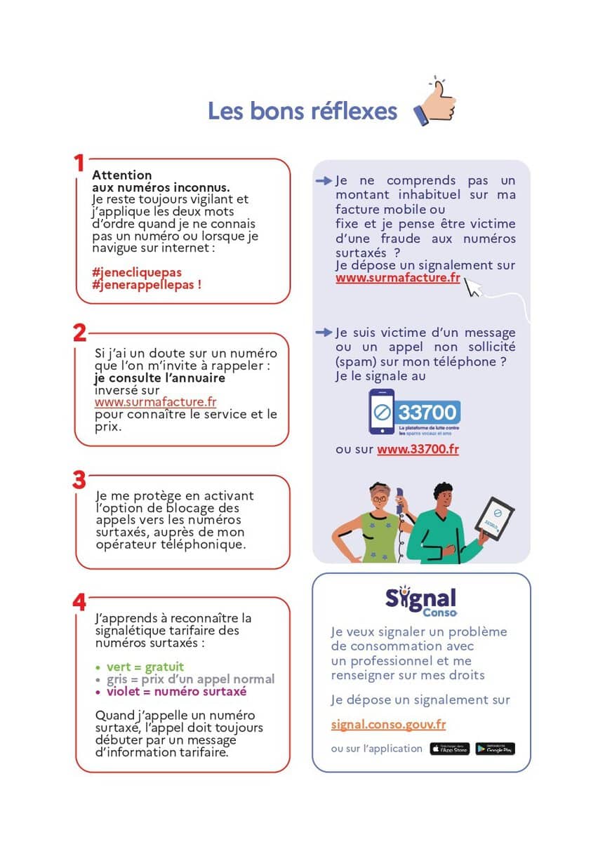 - Je me protège en activant l’option de blocage des appels vers des numéros surtaxés auprès de mon opérateur téléphonique.