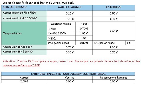 Horaires des accueils : matin 7h-8h20 soir 16h15-18h30